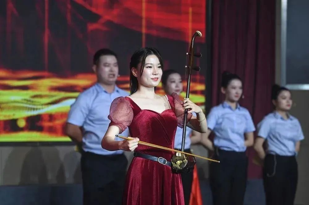 此次汇演在《送你一朵小红花》温暖优美的旋律中拉开帷幕,,,小品《清静生产立新功》再现了青安岗在生产一线为清静生产保驾护航的真实画像;;改编版合唱《一起生花》展现了党员干部职工以实干继承推动高质量开展的精神风貌......整场演出主题鲜明、、、形式多样、、、内容富厚,,,歌舞、、、独唱、、、小品、、、朗诵等15个节目精彩纷呈,,,体现了党员干部职工踔厉高昂、、、勇毅前行,,,一直攀缘新岑岭的精神情质,,,彰显了集团活力、、、实力与魅力,,,为现场观众献上了一场激情洋溢的视听盛宴。。