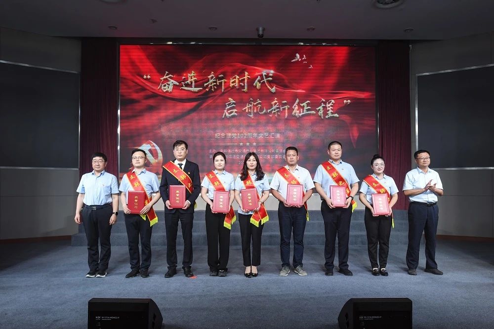 为庆祝中国共产党成立102周年,,,6月29日下昼,,,宿迁百乐博集团举行“五星党支部、、、支部之星”表扬仪式暨“奋进新时代 启航新征程”文艺汇演,,,热情讴歌党的绚烂业绩,,,表扬先进党组织和优异共产党员,,,进一步增强党组织的凝聚力和战斗力,,,激励宽大党员干部职工坚定理想信心、、、凝聚头脑共识、、、鼓足开展劲头。。集团党委书记、、、副董事长邵岩,,,市国资委党委委员、、、副主任胡鹏等出席活动。。