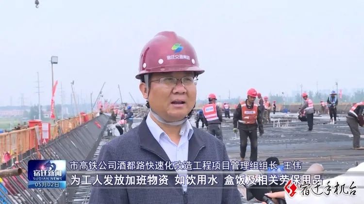 高铁公司酒都路快速化刷新工程项目治理组组长王伟说::“为工人发放加班物资,,如饮用水、、盒饭及相关劳保用品,,同时适当提高伙食标准,,实时发放劳动酬金,,切实包管工人的劳动权益。。。”