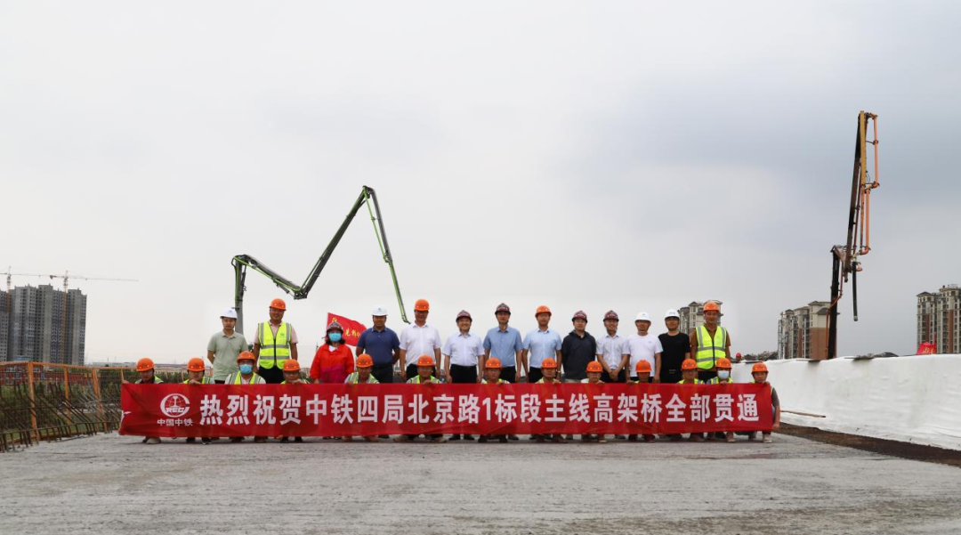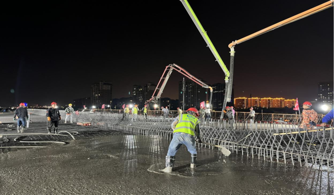 6月11日,,北京路快速化刷新工程1标段主线高架桥完成最后一联现浇梁顶板浇筑,,顺遂实现主线桥意会目的。。