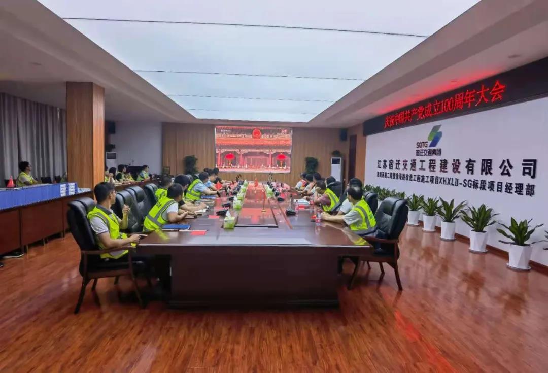 ▲宿迁交建组织收看大会现场直播