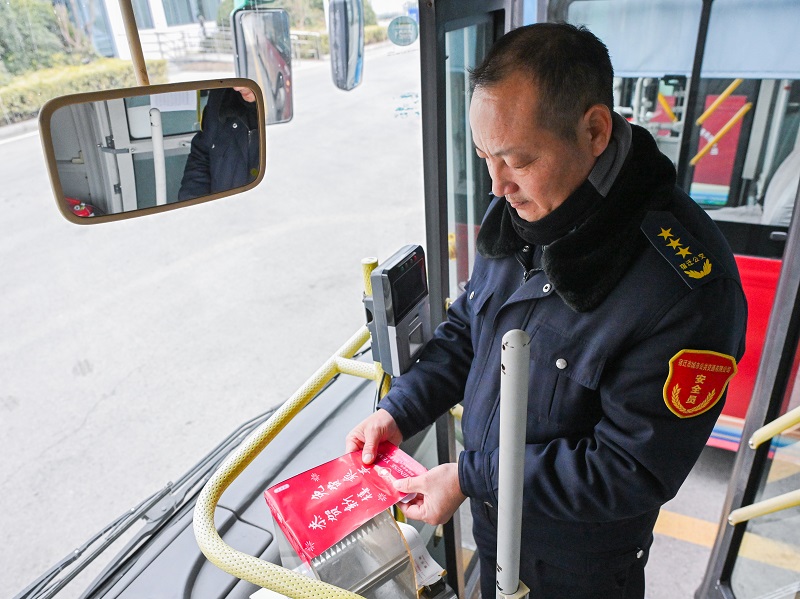 1月24日,,,宿迁市公交车驾驶员手拿免费乘车投币箱封口贴关闭投币箱。为了知足春节时代市民和游客的出行需求,,,营造温馨便捷气氛,,,勉励和提倡市民绿色出行,,,宿迁市所有城市公交、、城乡公交、、镇村公交于1月25日至2月4日时代免费乘坐。
