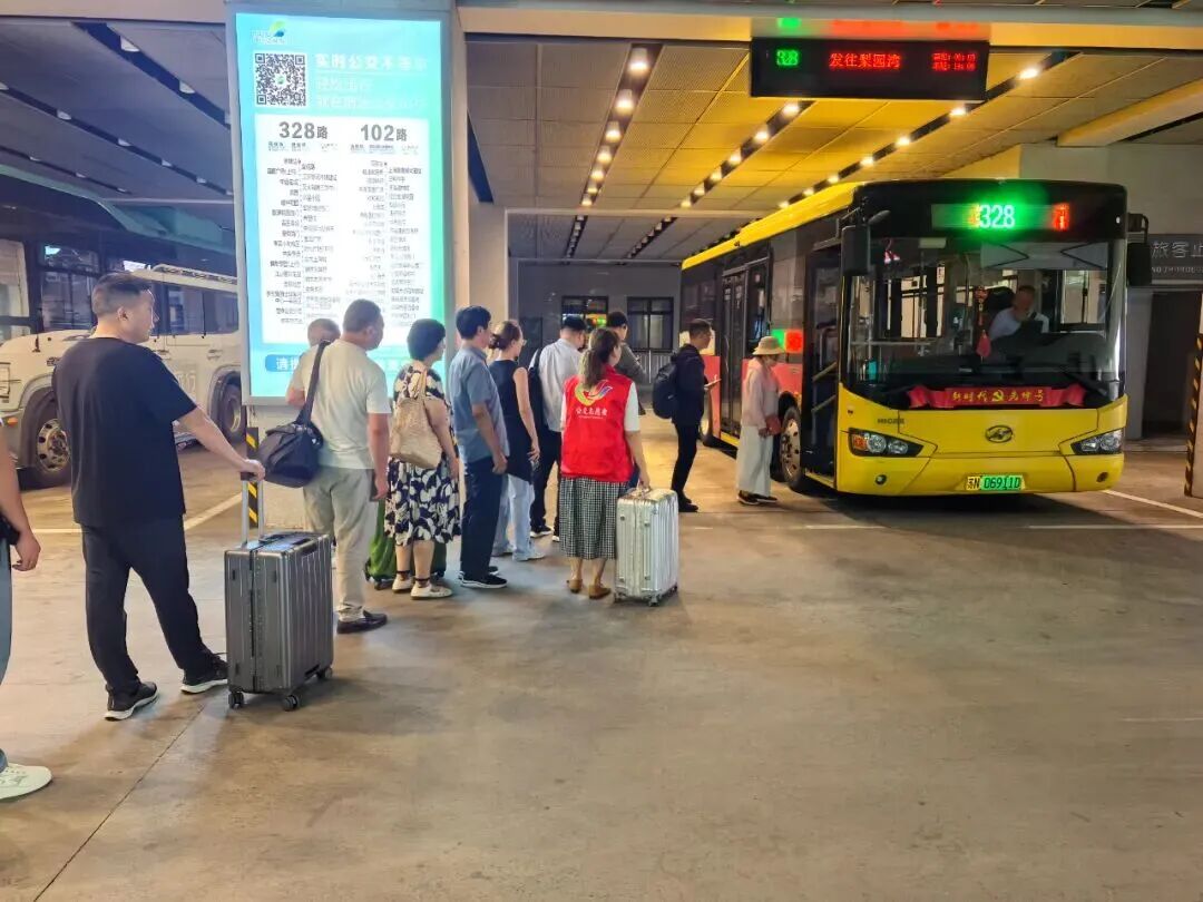 青年自愿者们也成为节日里的“温暖使者”。。他们身着红色自愿服,活跃在各至公交站点。。在高铁公交枢纽站,自愿者们自动帮携带大件行李的乘客搬运行李,指导他们快速找到乘车线路。。