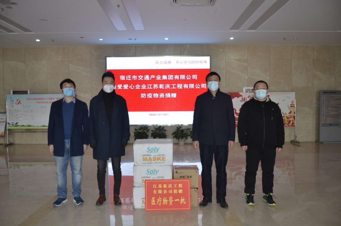 2月19日,爱心企业江苏乾庆工程有限公司将一批承载着对疫情防控一线职员满满眷注的防疫物资赠予给宿迁百乐博集团,支援集团疫情防控事情,转达抗“疫”正能量。