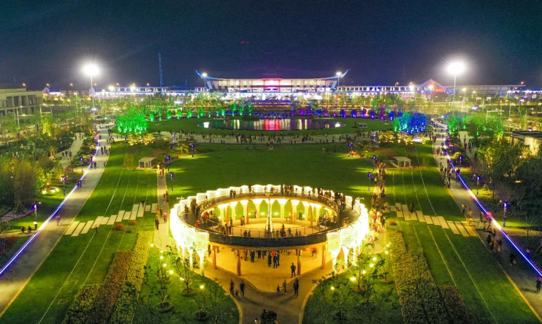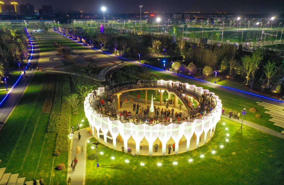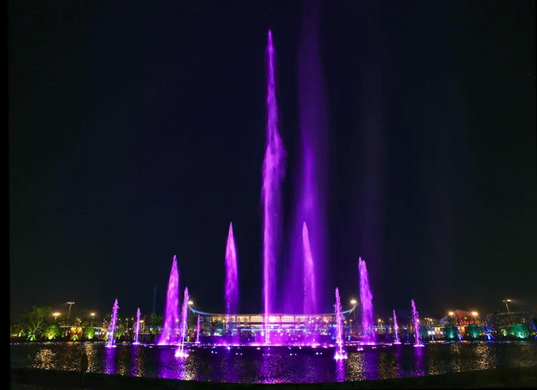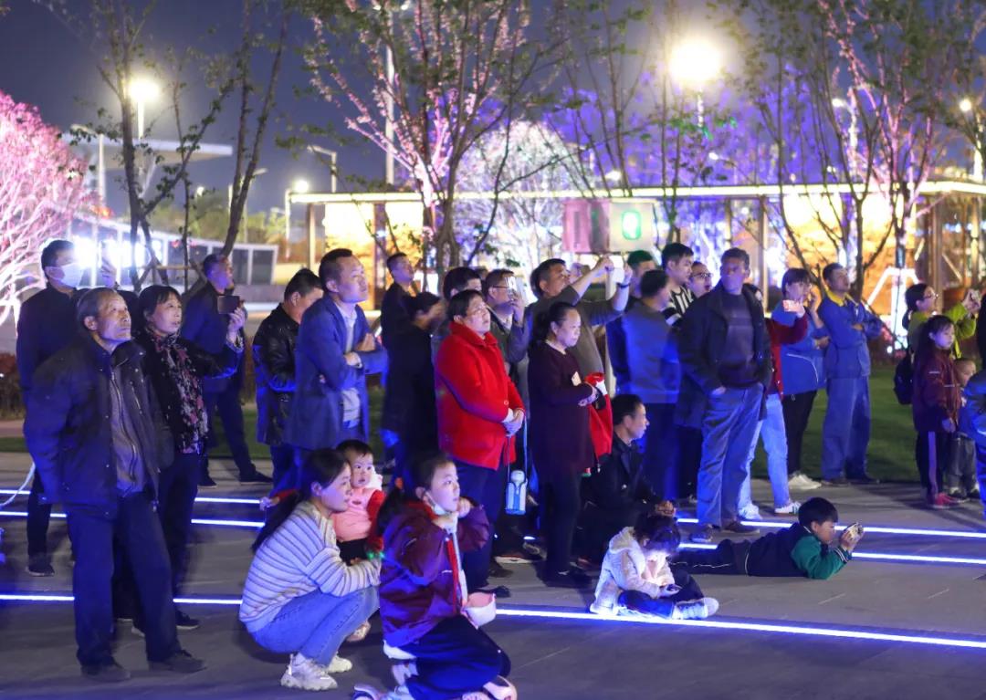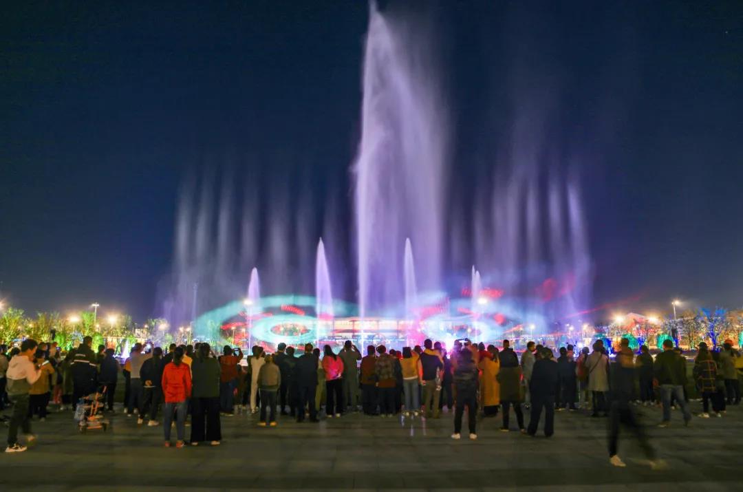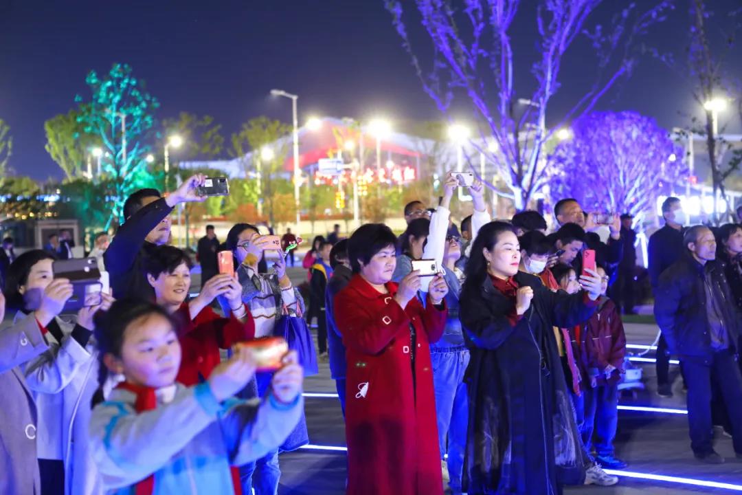 4月19日,,,宿迁市高铁商务区酒都广场正式开园迎客。当晚,,,该广场上演了《第一山河春利益》水景音乐剧,,,吸引了众多市民和游客纷纷前来打卡照相。