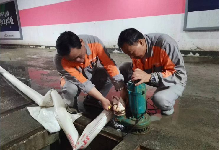 高铁公司实时应对防汛IV级,第一时间组织物业保安职员开展易积水区域的巡逻,夜间出动工程维修职员、、、出动排水装备6台、、、翻开集水井80余个,配电房排水5间。工程维修工冒雨检查电梯、、、集水井、、、配电室、、、管廊等重点部位。综合客运枢纽物业提前准备了4台抽水设施,工程维修职员协同夜间执勤保安坚守岗位,持续排水8个小时,为枢纽清静运转保驾护航。