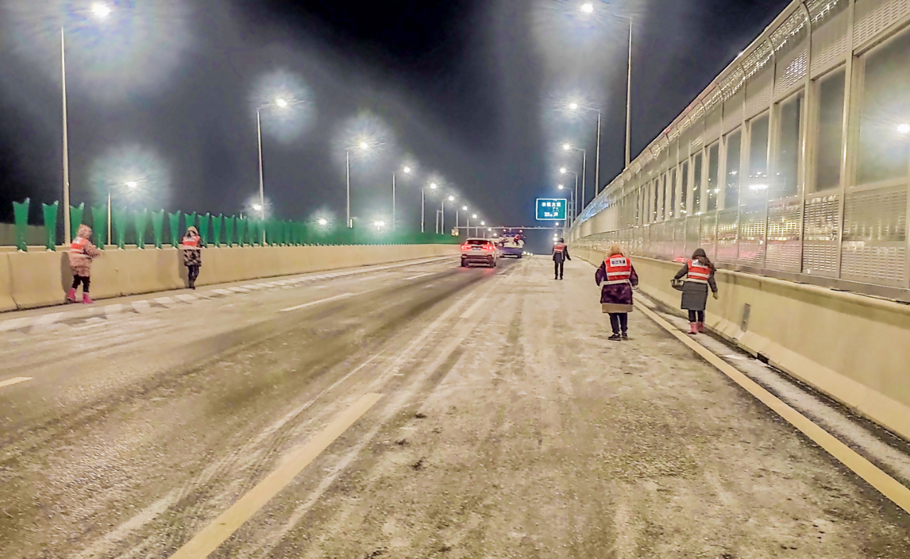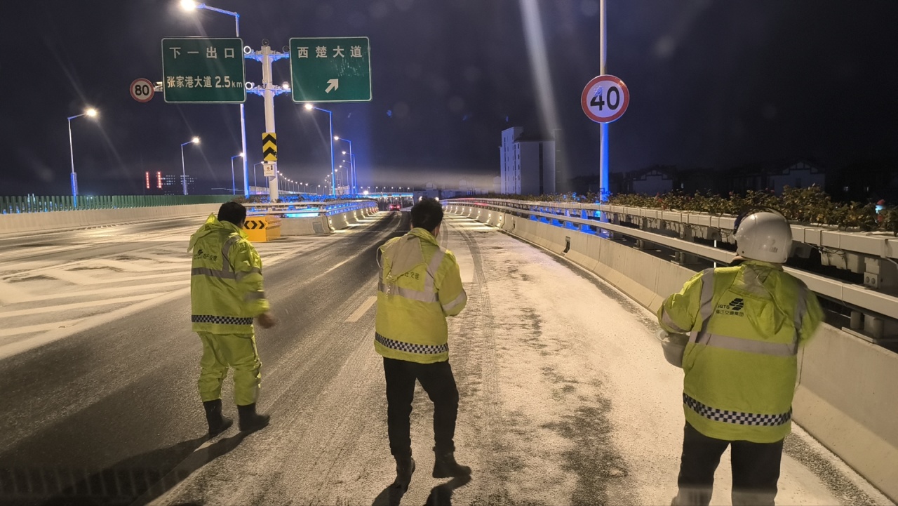阻止12月16日破晓1时,共使用防滑石子80吨、融雪盐70吨、融雪剂60吨,投入融雪撒布机、扫雪车等作业车辆21台,出动除雪职员200余人次;上海路、迎宾大道、北京路、洋河大道等养护路段全线无结冰通行。