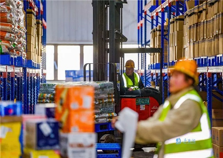 克日,记者走访江苏通湖物流园,整个物流园车水马龙,一台台叉车一直地装卸货物,一辆辆满载货物的汽车进收支出,一片忙碌情形。。。