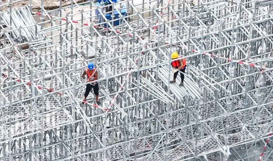 “天气确实热,,,但工期紧、使命重,,,我们不可退缩。”一位正在拆除支架的工人师傅说。豆大的汗珠从他额头滚落,,,湿透的衣衫紧贴后背,,,手中的工具却始终没有停歇。