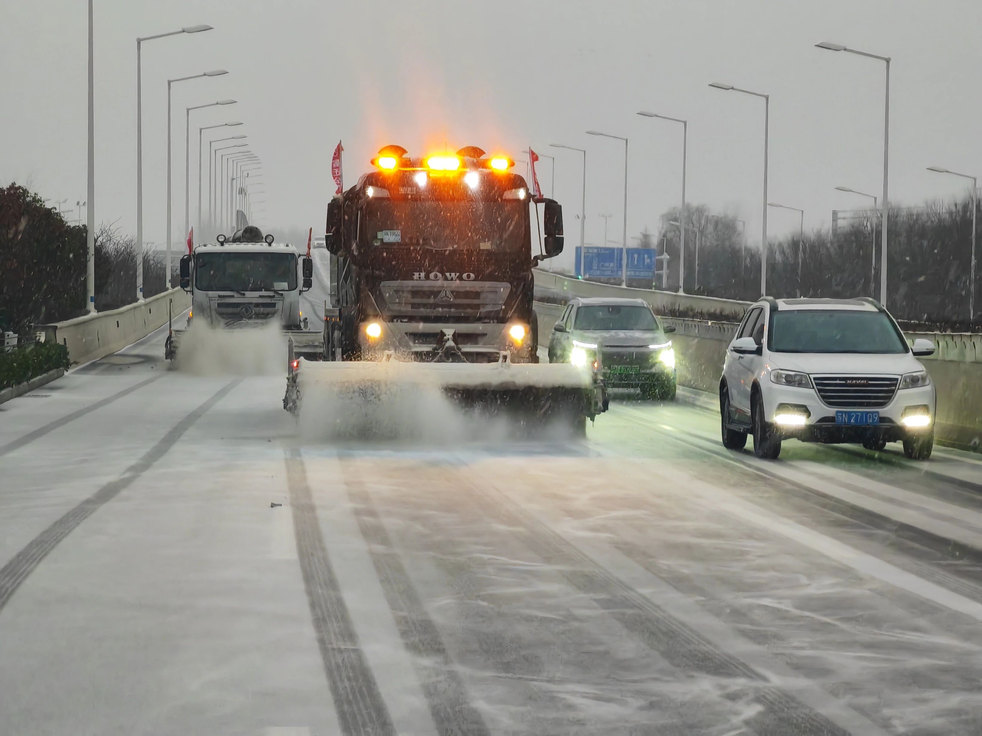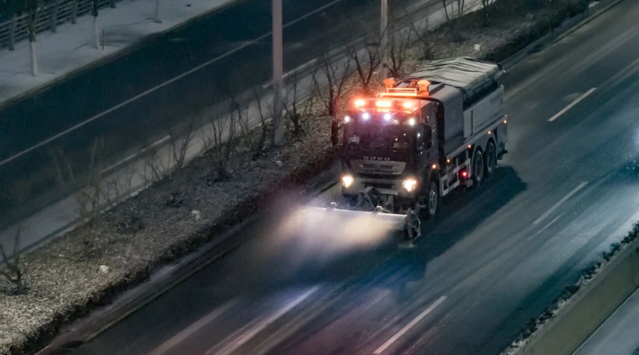 宿迁交建养护职员凭证既定方案开展全方位作业,,,现场除雪车、、撒布机编队协同,,,对管养路段睁开循环除雪作业,,,20余台应急巡查车辆24小时不中止穿梭,,,同时借助路网全笼罩监控装备,,,实时排查路面积雪、、结冰情形,,,做到“发明一处、、整理一处、、流通一处”。。。