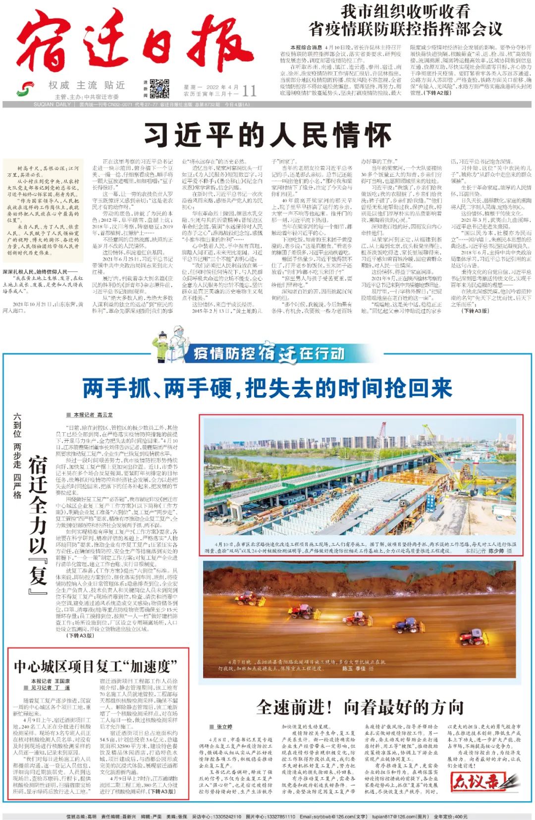 4ÔÂ11ÈÕ£¬¡¶ËÞǨÈÕ±¨¡·Í·°æ¡¶ÒßÇé·À¿ØËÞǨÔÚÐж¯¡·×¨À¸¾Û½¹¼¯ÍÅÖØµã¹¤³ÌÏîÄ¿¸´¹¤¸´²úÇéÐΡ£