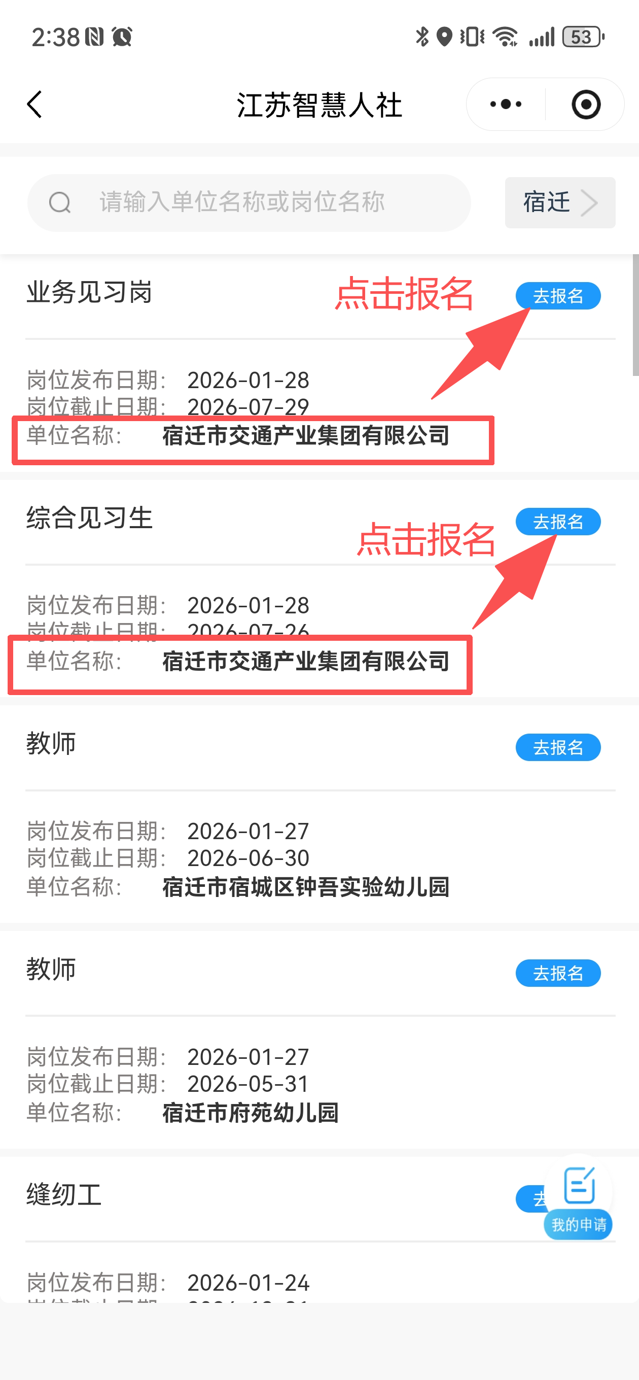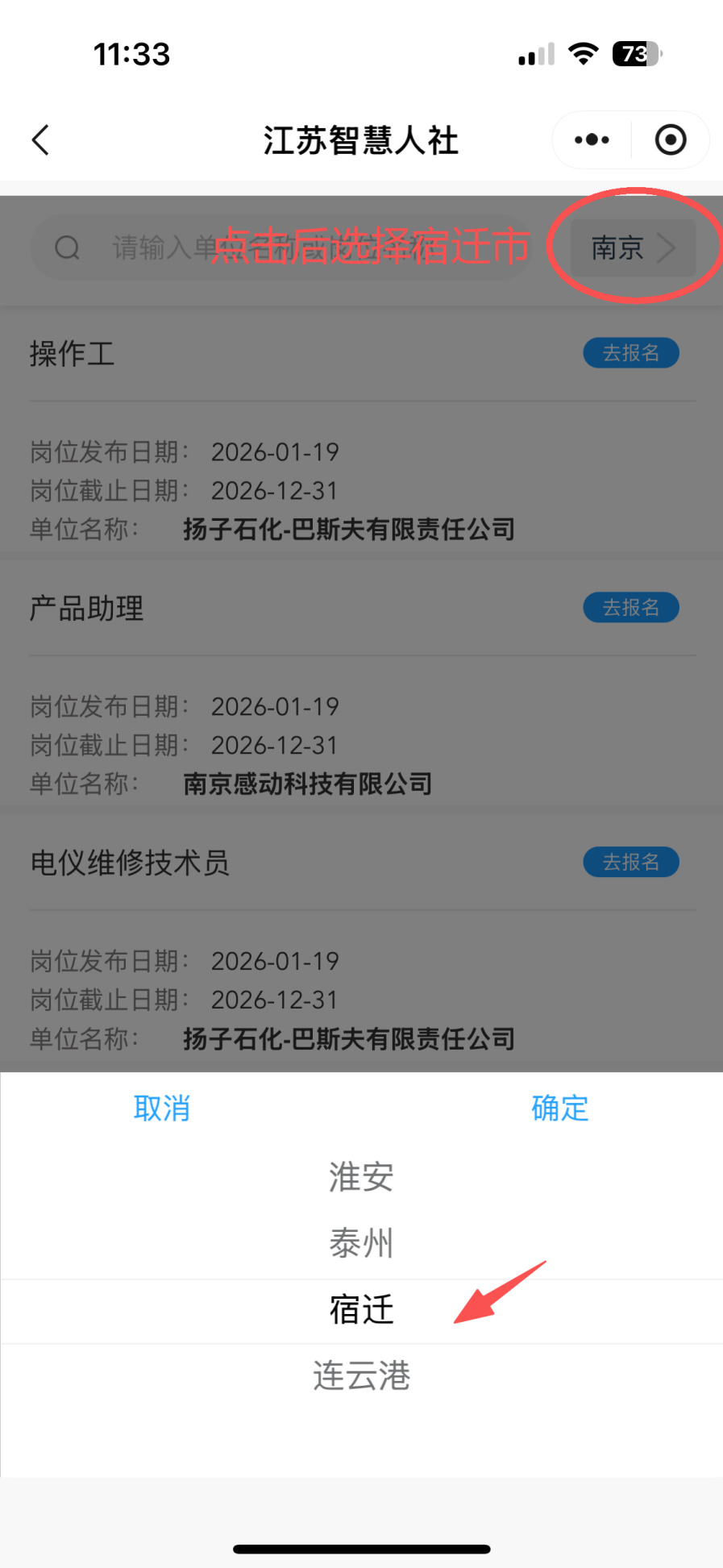 搜索微信小程序::江苏智慧人社、凭证下图所示方法操作报名