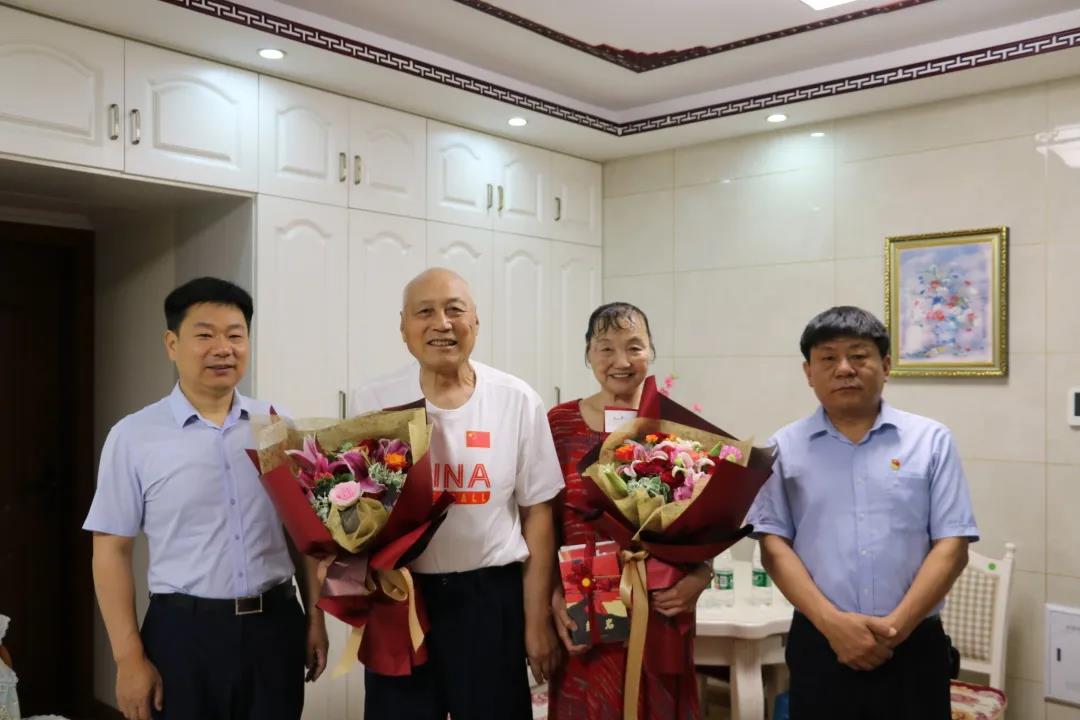 活动中,支部书记卢裕松向导党员及退役武士代表登门造访老党员、抗美援朝老战士徐金城和刘玉侠两名同志,认真谛听老人从军保家卫国浴血奋战的革命往事,详细询问老人身体状态和生涯情形,现场旅行两位老人所取得的声誉证书、革命勋章,随后,他还向两位老战士送上全心挑选的党史学习教育红色书籍和营养品,表达中心支部全体党员和退役武士对他们的真挚祝福。。